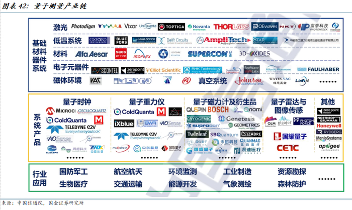 4.2、欧美占据上游主导,中游以量子时频和重力测量为主,军工领域应用最多