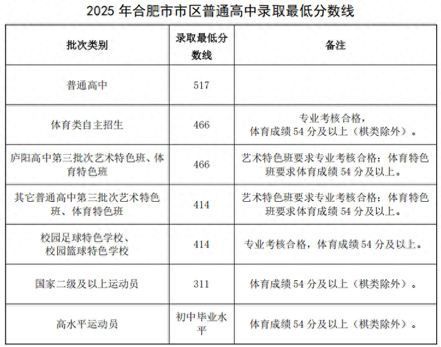 合肥中考分数线公布