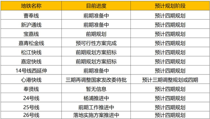 四期规划聚焦心港快线、松江/嘉定快线等战略项目,其中嘉青松金线已完成预可研,松江枢纽方案进入深化阶段。各新城积极争取轨交专项规划,通过TOD开发模式激发区域经济活力。