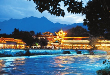 都江堰南桥夜景。新华社发