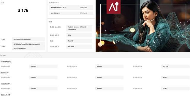 另外RTX 5090笔记本电脑GPU拥有24GB显存,拿来做AI计算会有不错的体验。UL Procyon GPU Float 16算力评分达到了3176分,是目前笔记本GPU中算力最高的型号,因此能够在AIGC或大语言模型方面,满足本地化部署和应用需求。