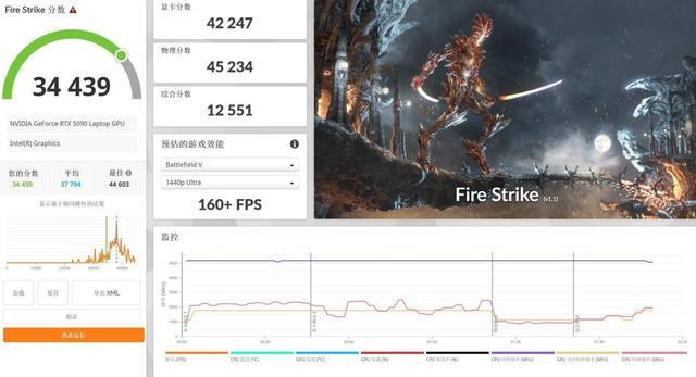 从理论性能测试来看,RTX 5090笔记本电脑GPU作为本世代最强移动级显卡,整体性能表现出色。