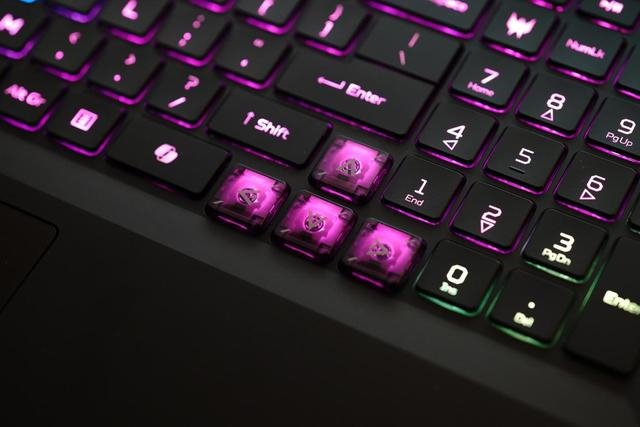 此外,掠夺者·战斧18 AI旗舰电竞本为了提升游戏玩家的手感,还提供了MagKey 4.0换键帽支持,WASD和方向键都可以更换为0.7mm超快触发键程的机械键帽,响应速度快,操控手感进一步强化,在笔记本上直接获得机械键盘的手感。