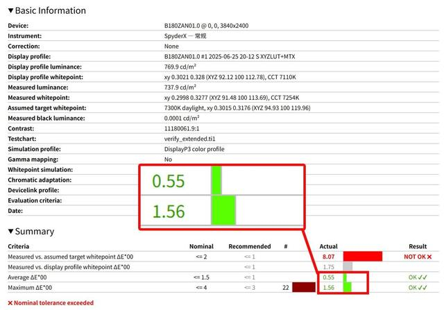 参考蜘蛛校色仪测试可以看到,这块屏幕有着堪称卓越的综合性能表现。