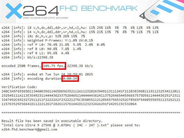 英特尔酷睿处理器在视频编码方面一直以来有着出色表现,H.264 2500帧编码帧率达到了105.75fps,完成时间仅为24秒。