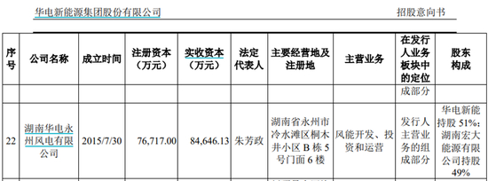 相比这些大家都很轻易能看到的信息,力场君更愿意关注一些细节,一些比较有意思、好玩儿的东西。根据招股书披露,华电新能旗下有一家控股子公司,名为“湖南华电永州风电有限公司”,由华电新能持股51%,另外49%的股权属于“湖南宏大能源有限公司”。