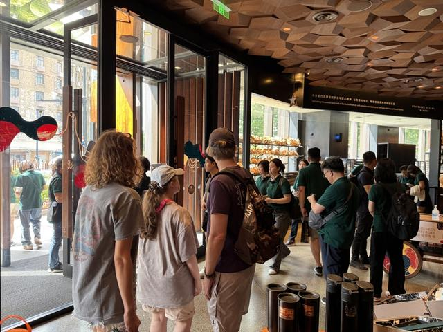 星巴克臻选工坊吸引大量游客,穿着绿色T恤的为韩国旅游团。