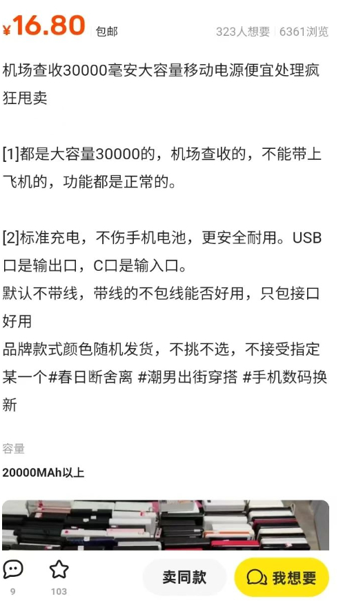 据上观新闻报道,在闲鱼上,找到一个标价25元的“3C充电宝贴纸”,浏览量已经接近2000人,有40多人“想要”。
