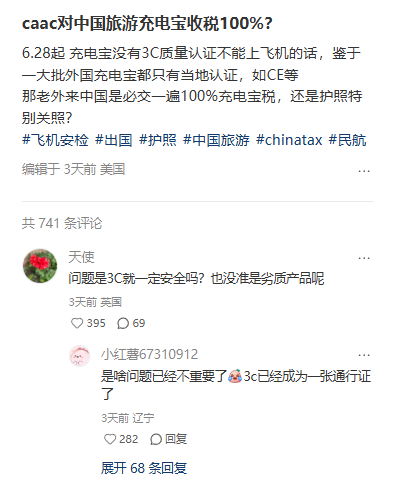 还有网友分享亲身经历:“我回中国没影响,但回首尔就不行了,只有3C充电宝能过安检,我带的国外充电宝要当场绞杀。国外没有3C,这特产只能回国买。”