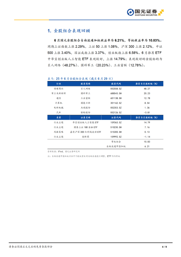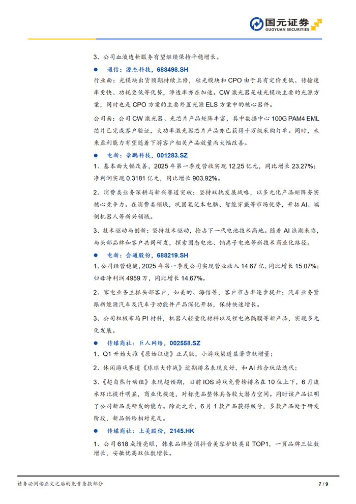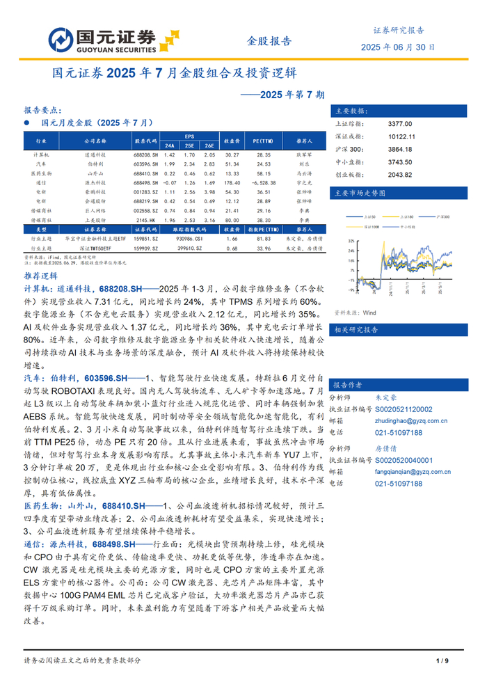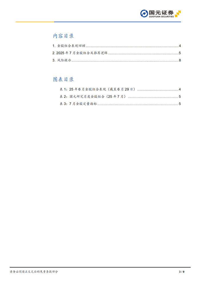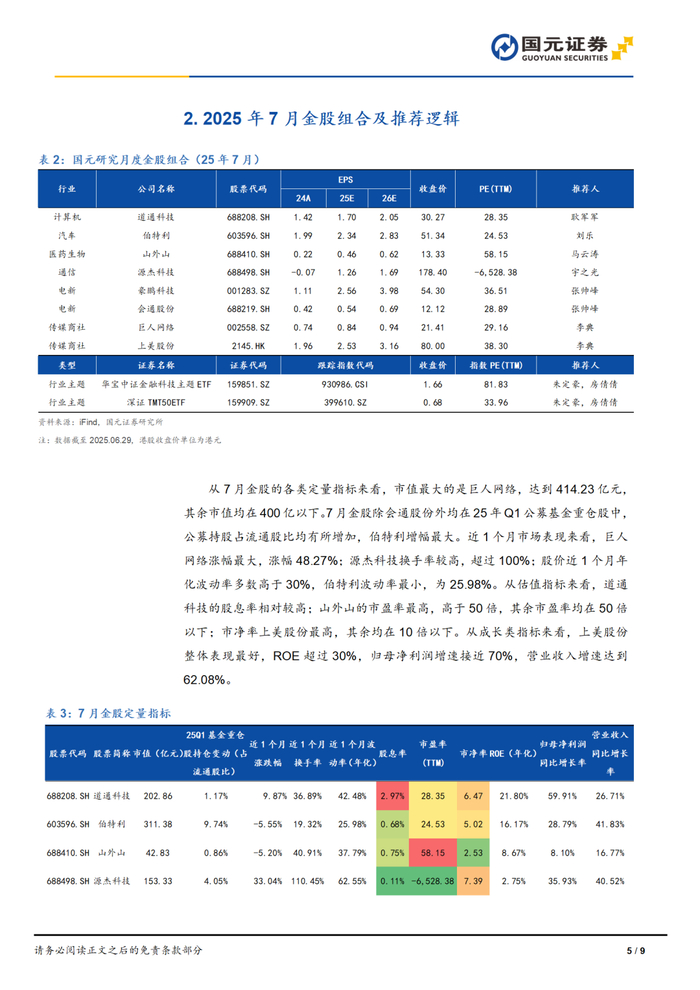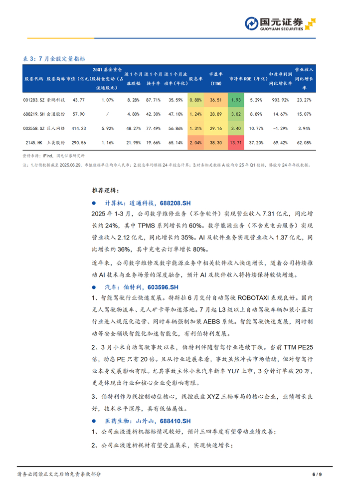 【国元研究】2025年第7期——国元证券2025年7月金股组合及投资逻辑