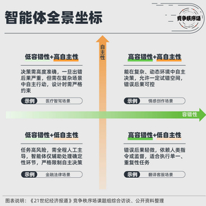 - 谁更“能自理”谁能走得远。容错性与自主性,可以为智能体划分价值象限。