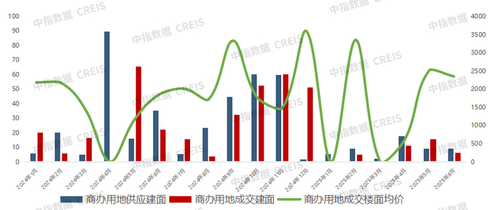 图:2024-2025年6月西安商办用地市场供销情况统计
