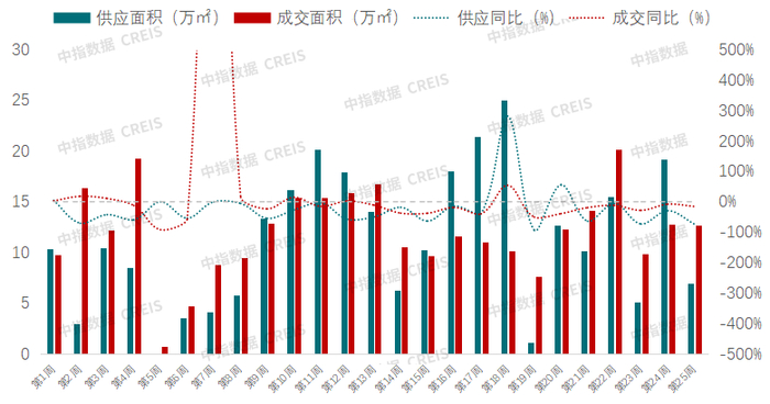 整体上,西安上半年楼市先扬后抑,根据中指数据库周度数据监测,2025年前六个月期间,楼市周度供应、成交同比均不及去年同期。成交结构上,楼市分化继续,一方面金茂璞逸东方、招商西安玺等豪宅项目供不应求,另一方面老规户型项目面临市场淘汰,压力巨大;成交压力下,房企力抓五一、端午等节点,加大促销力度对冲低迷需求。