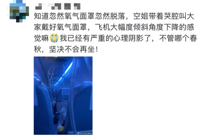 还有乘客发帖,称当时“空姐带着哭腔叫大家戴好氧气面罩”。