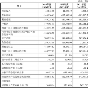 2022至2025年第一季度,公司营业收入分别为42.64万元、5302.12万元、7.43亿元和 32,041.53 万元,归属于母公司所有者的净利润分别为-77,696.52 万元、-87,115.82 万元、-140,887.94 万元和-23,251.22 万元此次融资金额39.04亿元,保荐机构为华泰联合证券有限责任公司。