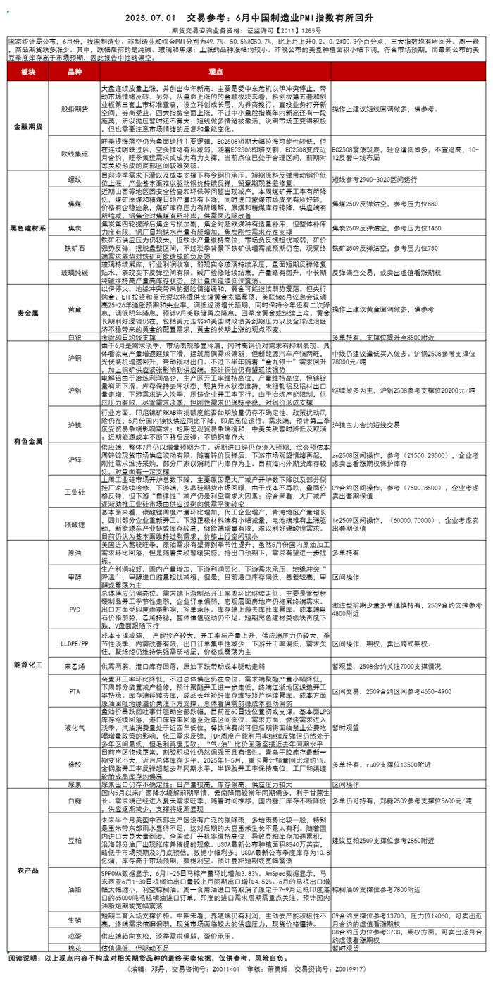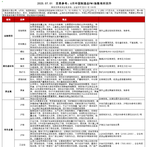 【交易参考】7.1:6月中国制造业PMI指数有所回升