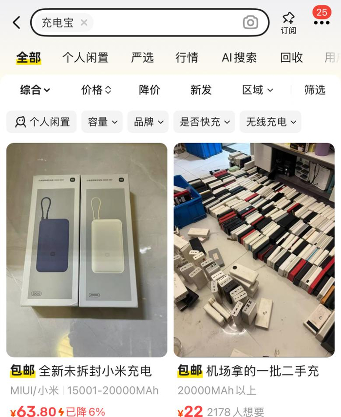 被机场扣留的充电宝最终流向何处,也引发了公众的关注。在二手交易平台闲鱼上搜索“充电宝”,会看到一些标注为“机场拿的”二手充电宝在售。当向卖家询问具体来源时,卖家拒绝透露,仅表示“包邮可小刀”(即可以少量议价)。
