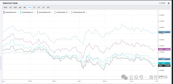 2周的6月11日前彭博采访了Paul Tudor Jones,一代宏观大师。他给美债当前的问题支了个“大而惨法案”的招。从他戏谑中,可以看到他看问题的思路和框架,他也指出了美债问题目前市场装着没看见。但总有一天市场要发难,从而政府要被迫平衡赤字,但这一天什么时候发生没人知道,也许那时他都不在了。