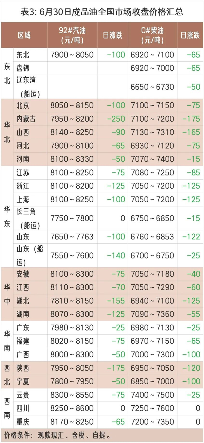 进入7月,“三伏天”高温,车用空调全开,暑期旅行增多,支撑汽油需求。但新能源替代占比提升,需求增量受限,终端或以销定采为主。同样受季节影响,柴油需求整体偏弱,中间商投机操作谨慎,下游多按需采购为主。步入新的销售周期,主营出货压力缓解,短线价格或挂靠原油窄幅整理,成交难有明显好转。