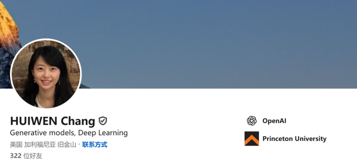 Huiwen Chang 于清华大学交叉信息学院(姚班)获得计算机科学学士学位。博士毕业于普林斯顿大学。她于 2015 年在 Adobe 西雅图公司实习,并于 2016 年获得微软奖学金。之后加入谷歌,担任高级研究科学家。在谷歌工作 6 年后离职,全职加入 OpenAI。