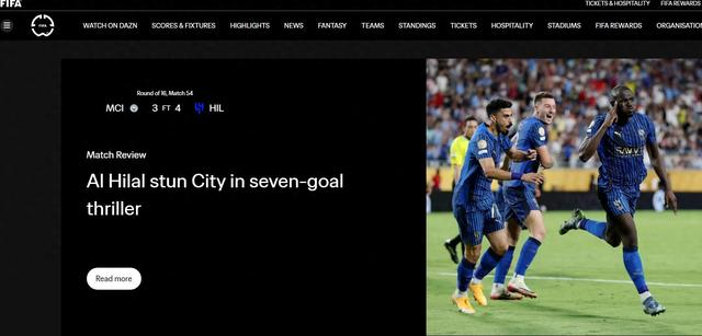 国际足联官网以“新月队在这场七球大戏中击沉曼城”为标题报道本场比赛。