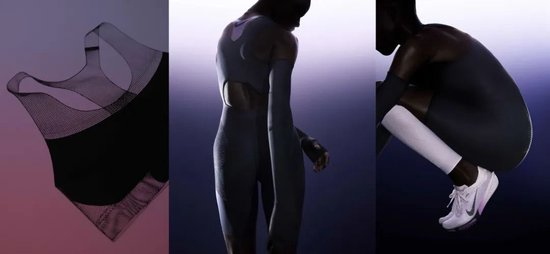 FlyWeb内衣采用革命性的3D打印TPU材料,打破了传统运动服装的设计框架,更加轻盈、透气,并有卓越湿度管理性能;Victory Elite FK竞速鞋通过优化Air Zoom气垫和精密碳板结构,减轻鞋重、提升前掌灵活性。