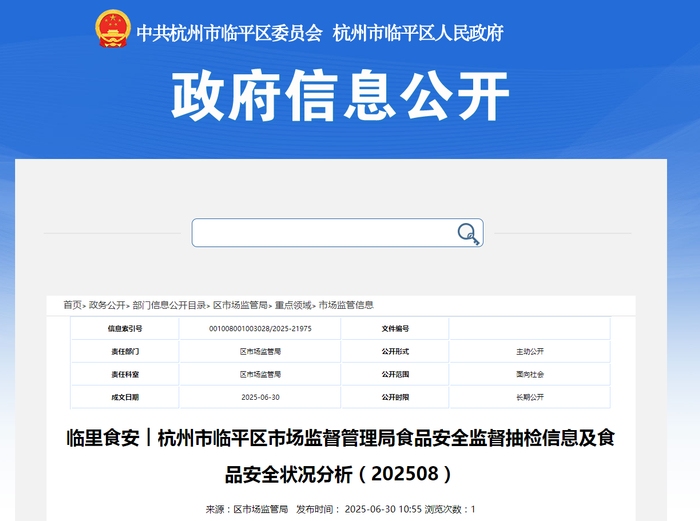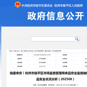 临里食安︱杭州市临平区市场监督管理局食品安全监督抽检信息及食品安全状况分析