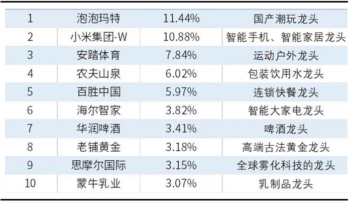 而为了更好满足投资者投资新消费企业的需求,国证指数公司近期也发布了“国证港股通消费”指数。这个指数更具有“新消费”的表征性,也兼顾了科技属性和成长属性,行业分布也更均衡,特别是前十大成分股,选取了各个广义消费的龙头,包括潮玩、智能硬件、户外运动、高端古法黄金等。其中在家电领域,海尔智家是唯一入选前十大的家电企业。