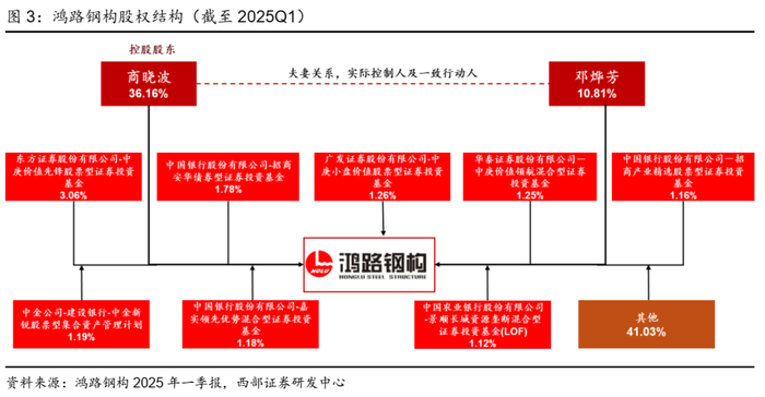 ● 公司为民营企业,实控人为商晓波、邓烨芳夫妇,合计持股46.97%。公司控股股东为商晓波先生,实际控制人为商晓波、邓烨芳夫妇,也是公司发起人。截至2025Q1,商晓波先生持股36.16%、邓烨芳女士持股10.81%,其余前十大股东均为内地机构投资者,其中,东方证券-中庚价值先锋股票型证券投资基金持股最多,为3.06%;前十大股东合计持有公司58.97%的股份。