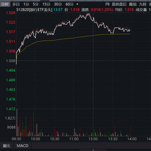 7月1日,A股银行板块大幅冲高,行业涨幅全市场领先!银行ETF龙头(512820)深蹲反弹,盘中涨幅一度接近2%,截至13:59,涨1.2%,有望终结两连跌!