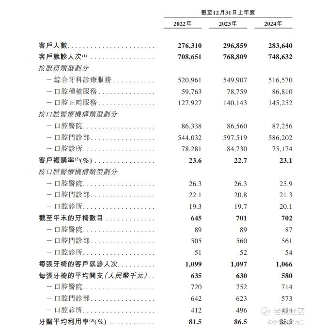 从运营数据来看,大众口腔2022年至2024年的就诊人次分别为708,651人次、768,809人次及748,632人次;就诊人次平均开支分别为人民币578 元、人民币575元及人民币544元: