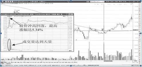 成交量以脉冲形式放大,持续时间必然有限,那么股价上涨的时间也会非常有限。这样一来,我们T+0做空机会出现在很短的时间里。成交量短时间内达到天量的时候,意味着股价达到顶部区域,高抛做空的时机成熟。我们有理由相信,分时图中的冲高回落的做空机会一定出现在股价冲高期间。