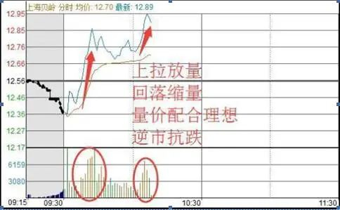 1、量价配合完美,上拉放量,整理回落缩量,逆势拉升突破前面高点,而且分时量快速放大,属于买入(做T低吸)信号,逆市表现为抗跌。
