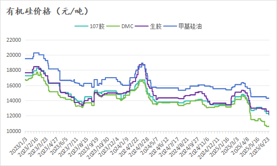 原料端:今日多晶硅行情继续维持弱稳运行态势,市场报价变化不大;而有机硅行情稳中稍显弱势,部分牌号报价稍有松动,具体如下图所示: