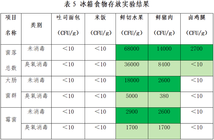 结果显示,臭氧消毒能提高冰箱的保鲜效果: