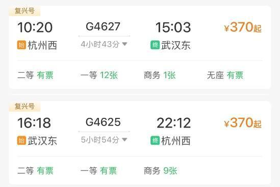 武汉东站往返杭州西站的高铁将在今年暑运期间开行,G4627/6杭州西站10:20始发,15:03抵达武汉东站,全程4小时43分;G4625/8武汉东站16:18始发,22:12抵达杭州西站,全程5小时54分。
