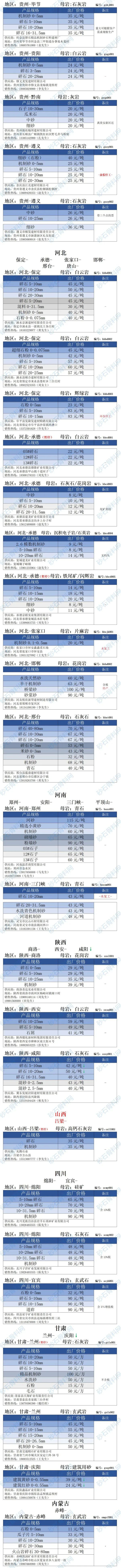 ——2025年7月上旬全国各地区砂石骨料产品(采购)在线报价信息