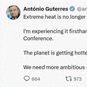 古特雷斯警告说:“地球正变得越来越热,越来越危险——没有国家可以幸免。”他呼吁采取行动应对气候变化。