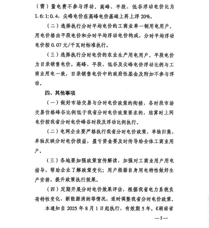 8月1日起执行!湖南发布工商业用户分时电价新政,中午2h低谷时段