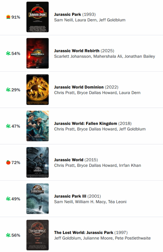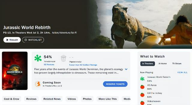 中国内地和北美同步上映!寡姐新片《侏罗纪世界:重生》烂番茄开分!54%排行《侏罗纪》系列第四
