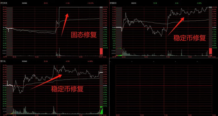 下午传艺科技涨停修复固态电池,楚天龙、安妮股份拉高修复稳定币,说明资金是认可的: