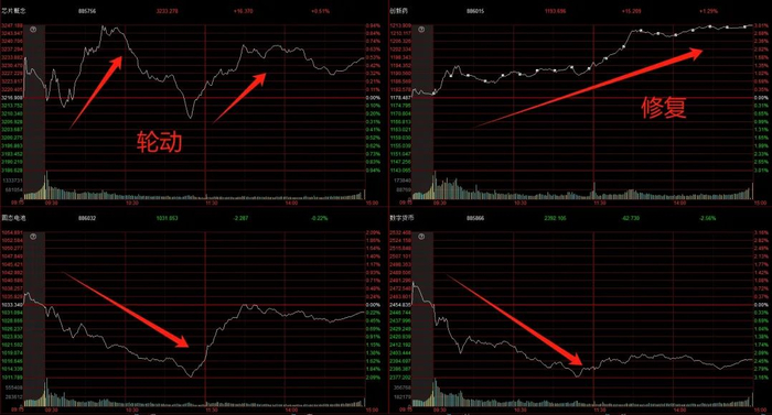 今天下午活跃板块都有不同状态的回落,明天应该还会有轮动修复,但这里可能会有淘汰赛了。