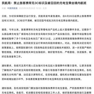 上个月底,民航局发布紧急通知:自6月28日起禁止旅客携带没有3C标识、3C标识不清晰、被召回型号或批次的充电宝乘坐境内航班。现在新规已经开始实行,有网友说那坐高铁会有同样的规定吗?