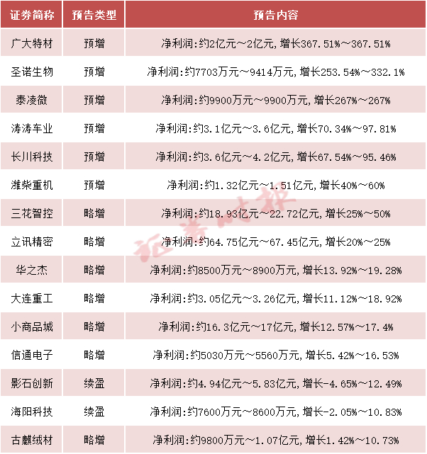 3.从个股来看,广大特材、圣诺生物等公司预计归母净利润最大增幅超过100%;