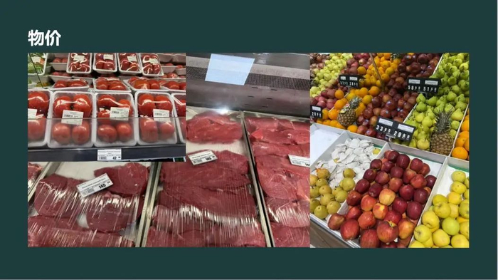 当地的生活物价水平其实相当高,我拍了超市的照片,换算一下,一公斤(五个)西红柿要将近30元人民币,一公斤牛肉更是高达145索莫尼。这种“低收入、高消费”的现象,也反映了本地物资生产的匮乏,为我们发展消费品、农产品加工等产业提供了市场空间。