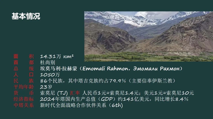今天我的分享就先到这里,希望这些基础信息能帮助大家对塔吉克斯坦有一个初步的、立体的认识。谢谢大家!