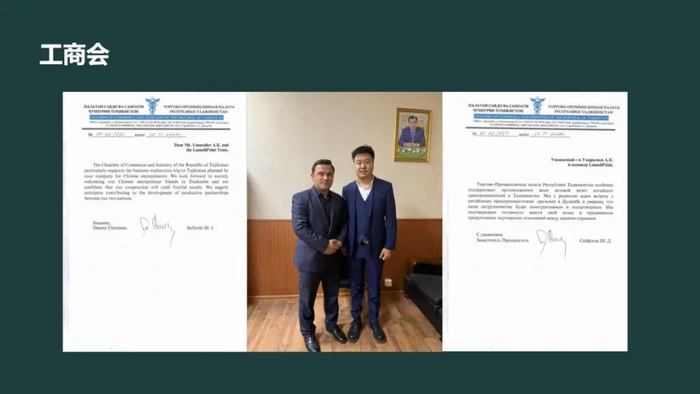 更令人振奋的是,下个月,塔吉克斯坦的国家工商会(相当于正部级单位)将在中国正式设立办事处,放在咱们这边(令心国际),届时也会邀请他们工商联领导、大使馆领导,也包括咱们中国相关领导出席,以一个正式官方身份,给大家做后期的一些工作。