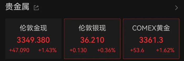 Wind数据显示,6月30日,现货黄金盘中一度跌至一个月内新低。7月1日,现货黄金上涨,截至发稿,现货黄金涨1.43%,报3349.38美元/盎司;COMEX黄金期货涨1.62%,报3361.3美元/盎司。