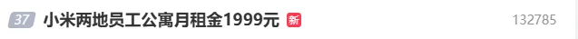 小米员工公寓月租1999元,登上热搜!