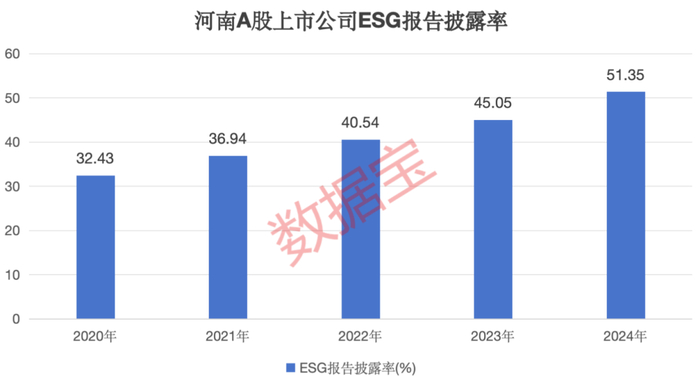 河南A股公司2024年ESG报告披露率首次突破50%,达到51.35%,较2020年提升近19个百分点。